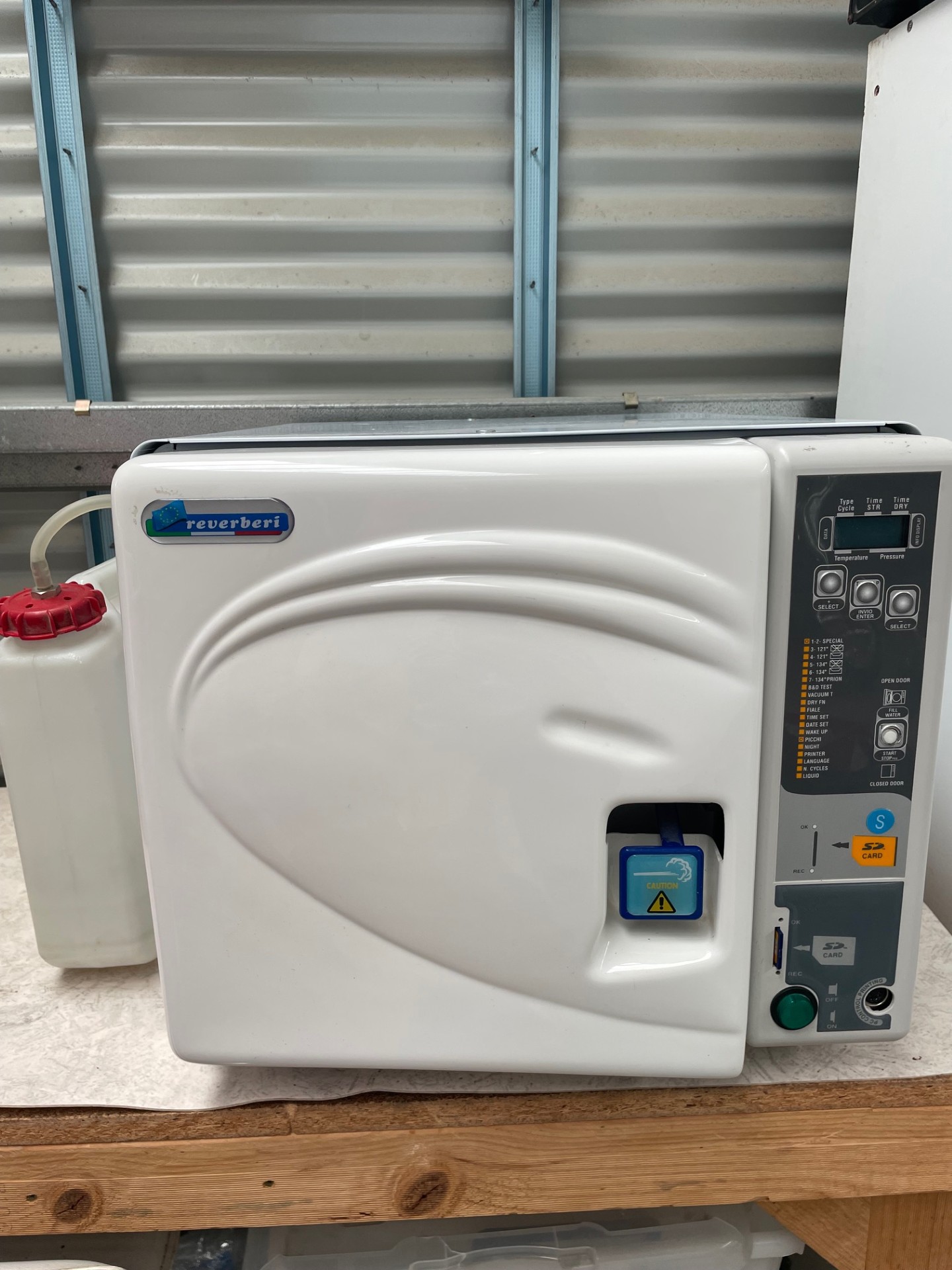 Riverberi steriliser and printer, purchased from a Dermatology clinic as a spare, but not required now. Last serviced and calibrated in 2022 but works perfectly. Printer and all accessories included in price.
